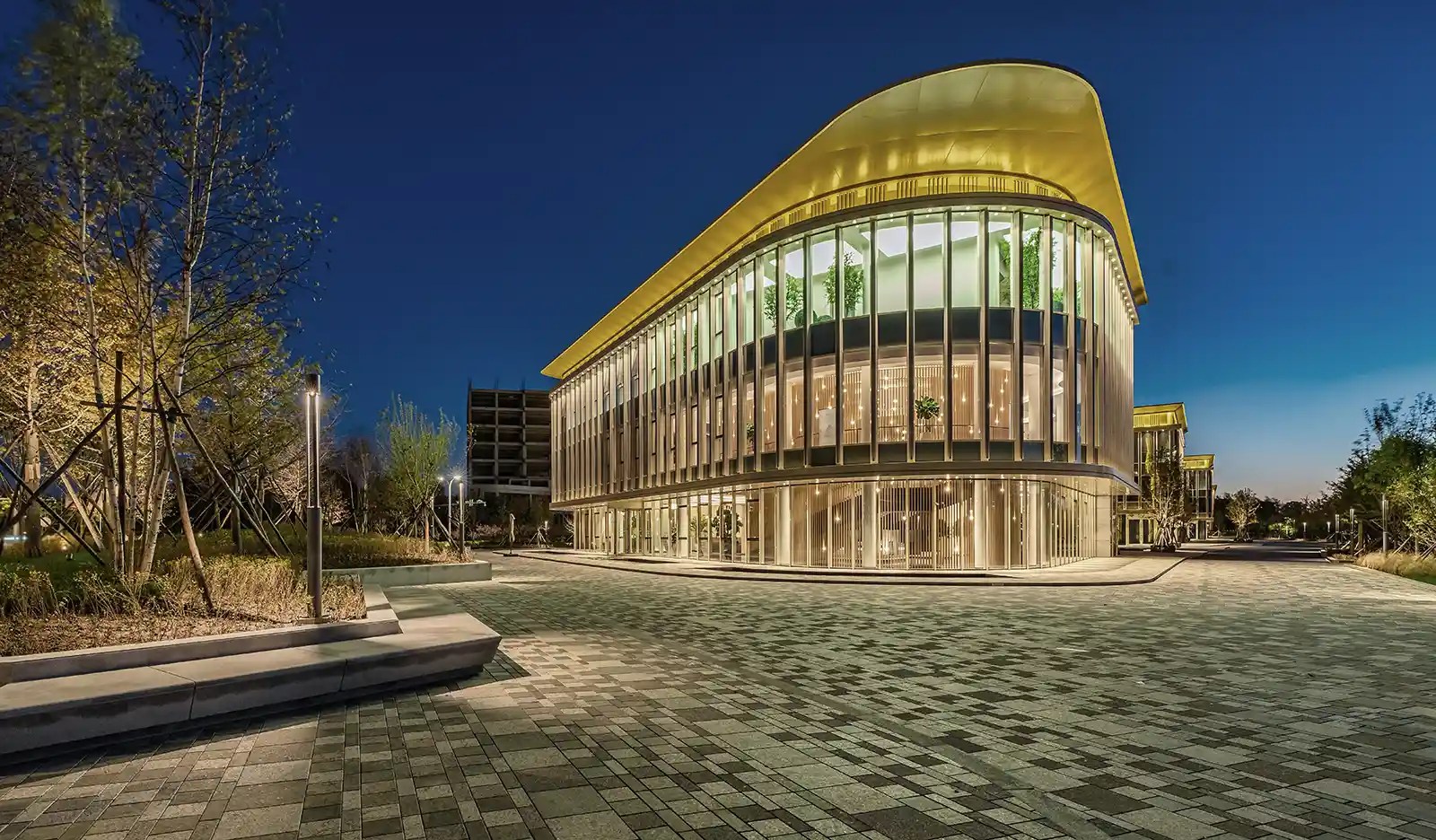 设计试图使用斑驳的设计语言完成宗地与河流的情景链接。充分调动现有环境条件,将原有竖向进行景观化延伸。用精细化的设计提供精致简约而富有情景感的诗意空间。